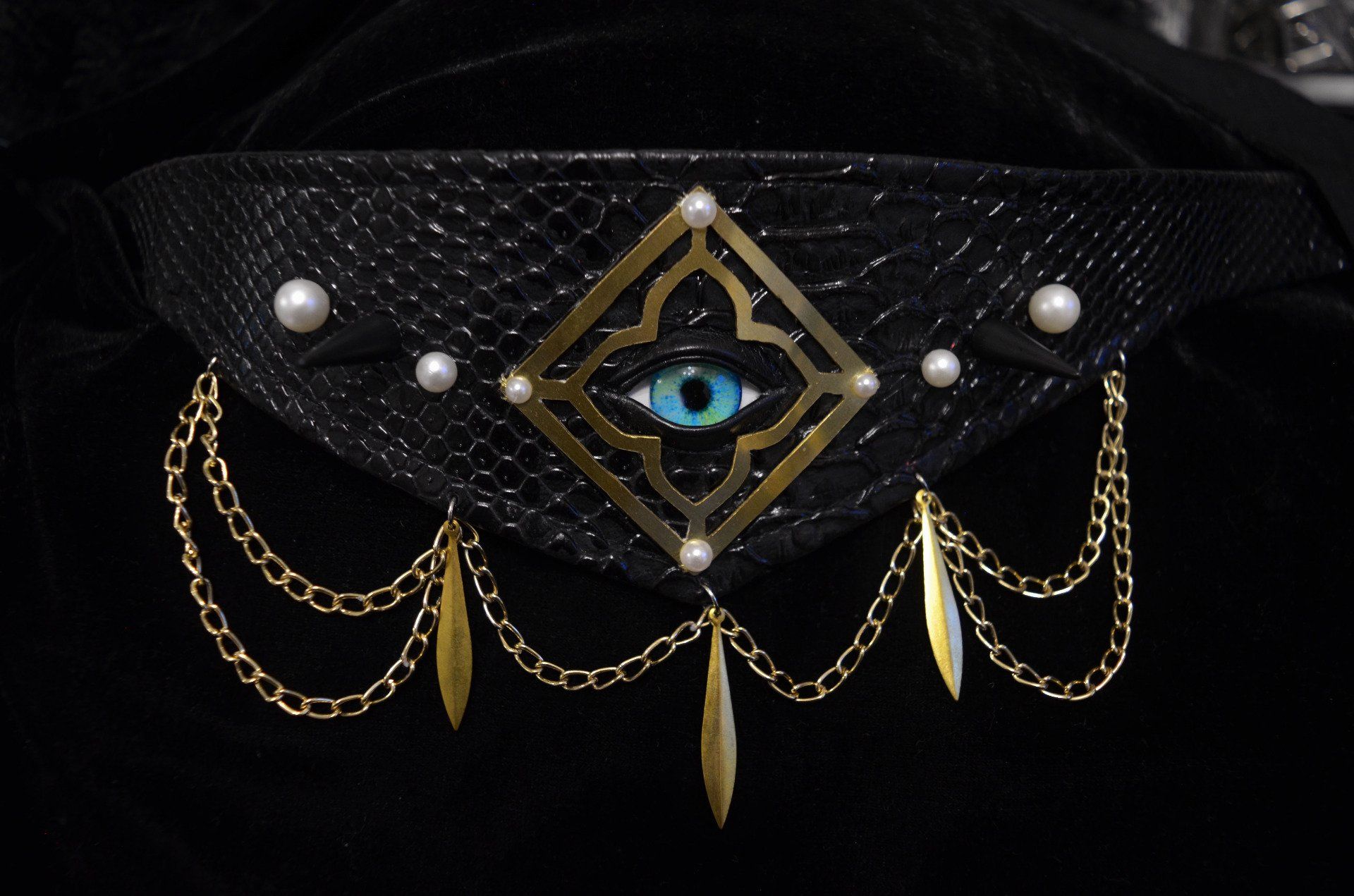 Choker gothique “ACTE I” – Lux in Tenebris | Œil mystique & laiton doré