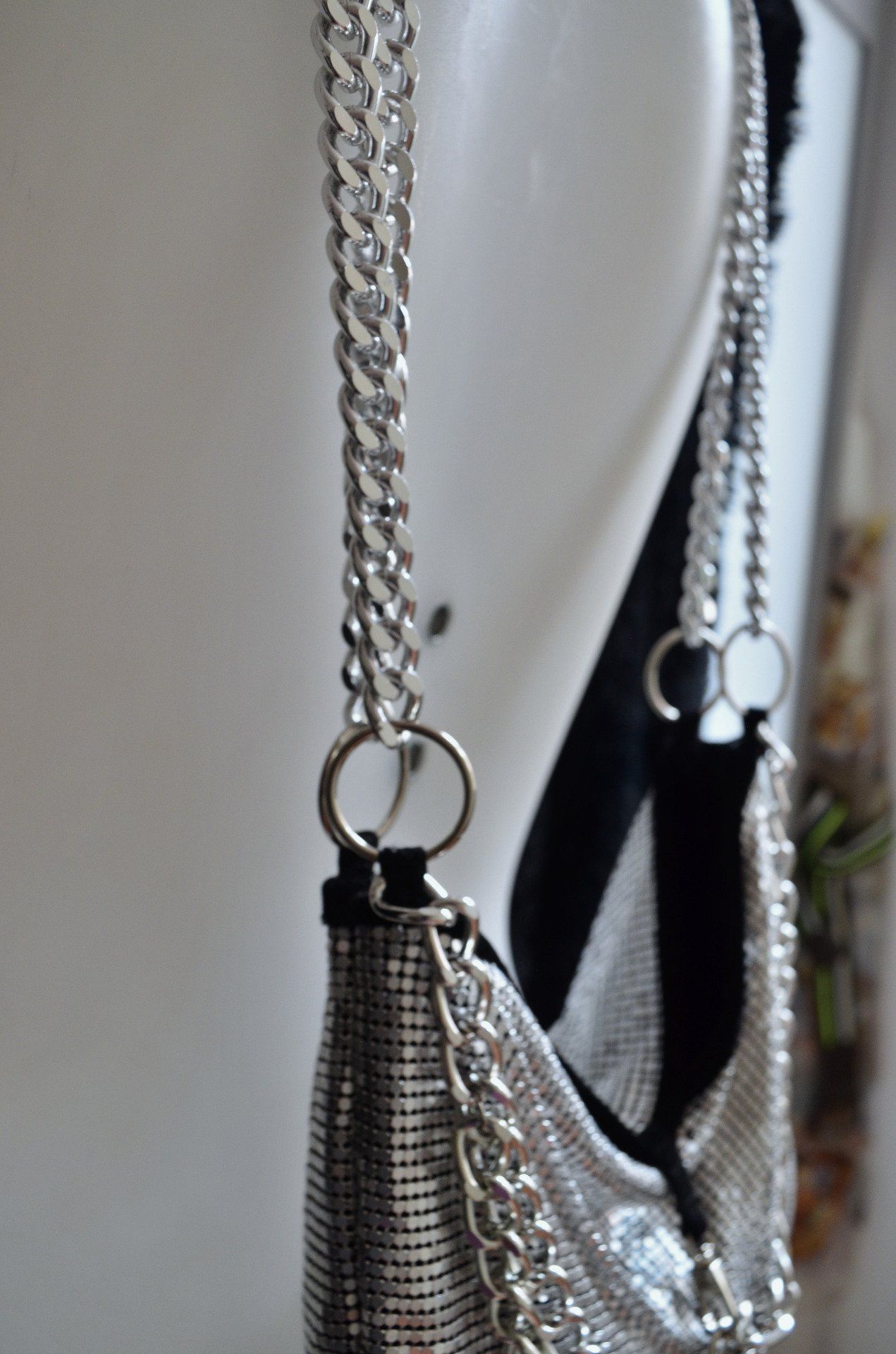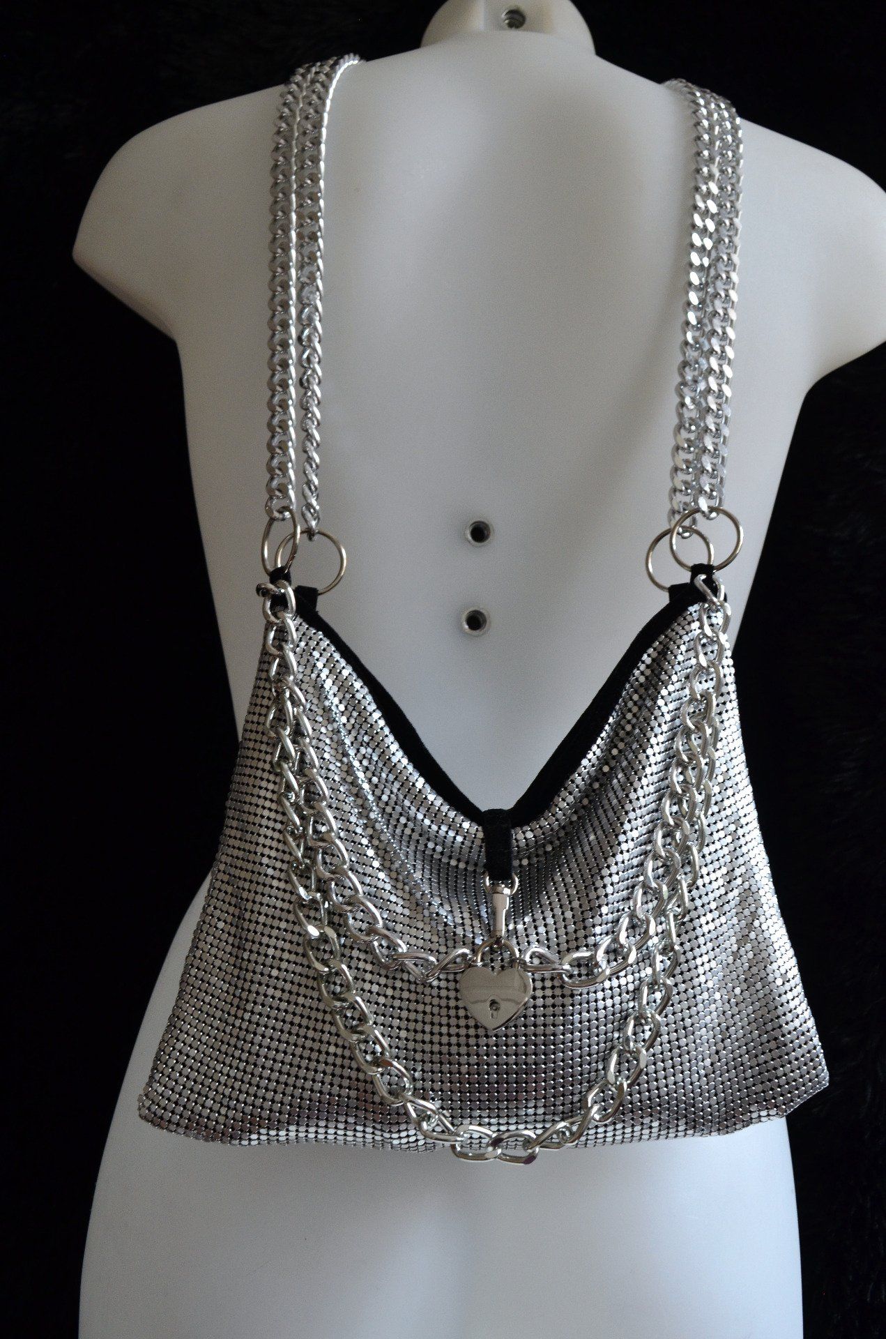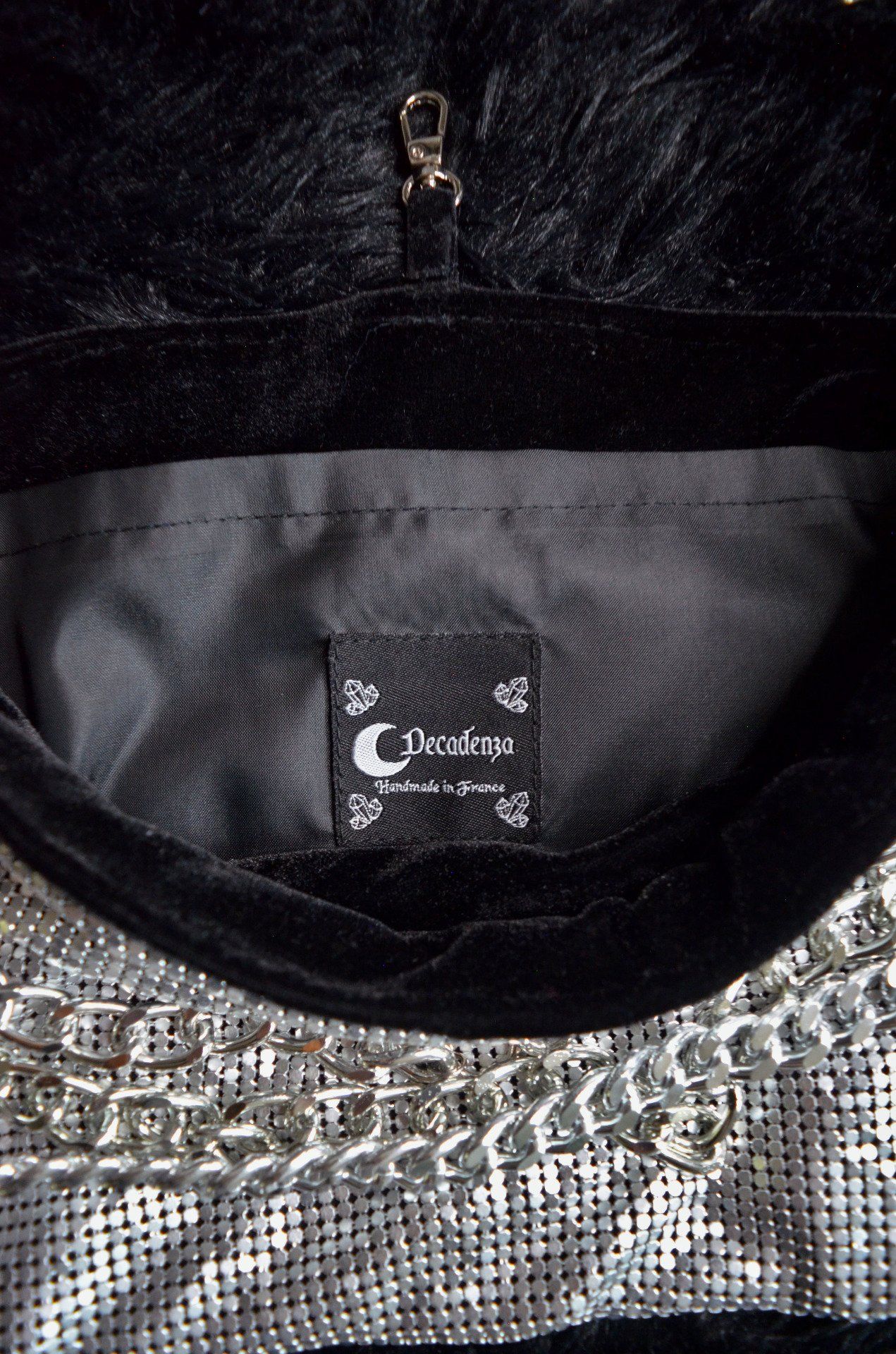 Conçu en côte de maille aluminium argentée, ce sac évoque les armures scintillantes et les silhouettes nocturnes, faisant de lui un véritable accessoire gothique aussi captivant que puissant.